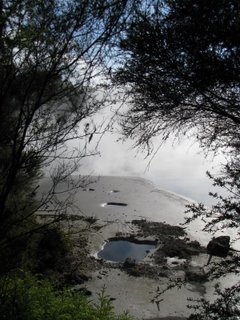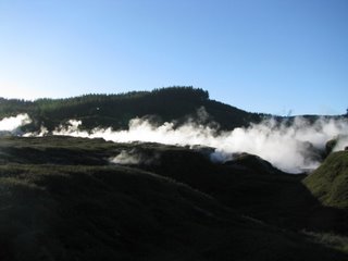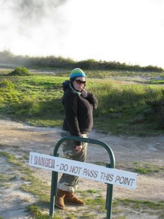 The next day we dragged ourselves onto the bus for the return journey north (bus stopped so we could play in the snow), visited some more volcanic hot spring stuff at the 'Craters of the Moon' and then went to Hot Water Beach. Dave dug us a big hole in the sand and then we sat in steaming water watching the sunset and the stars come out. Followed up with a cold outdoor shower - an interesting thing to do in winter!
